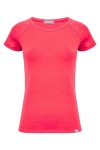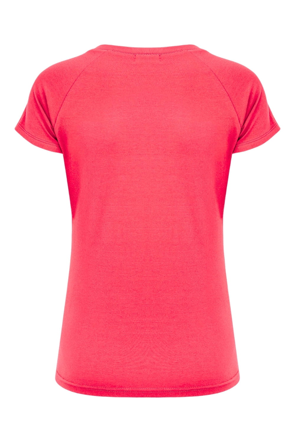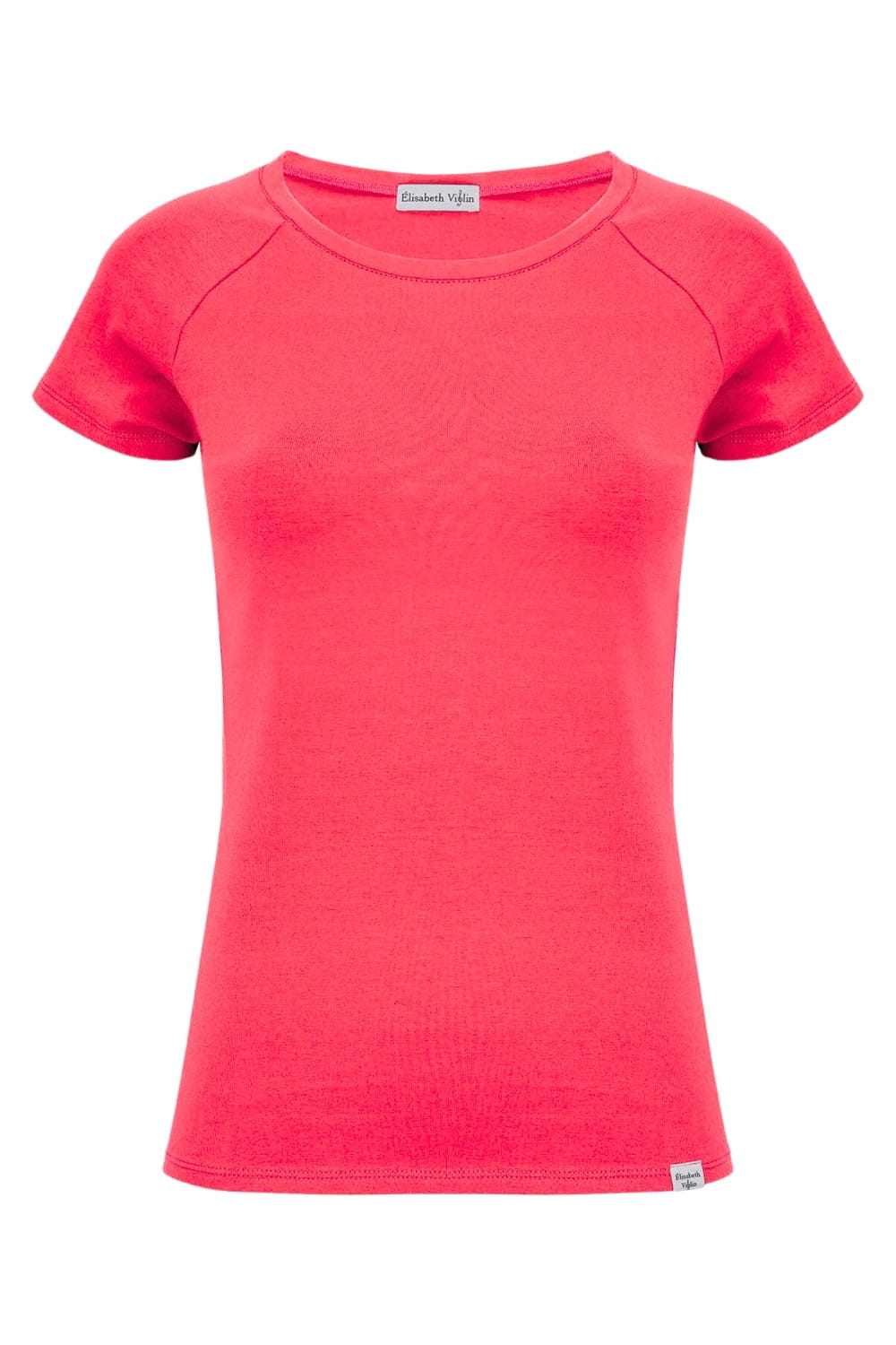 MAYA - Rouge Red - wiskozowa taliowana bluzka z okrągłym dekoltem i reglanowymi krótkimi rękawami
