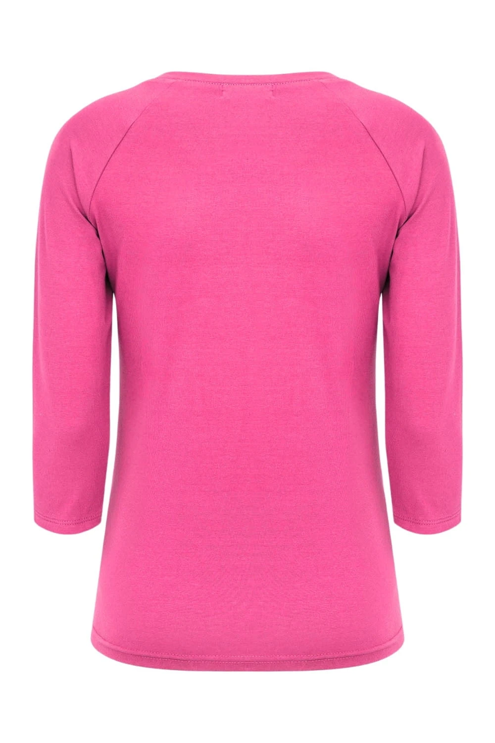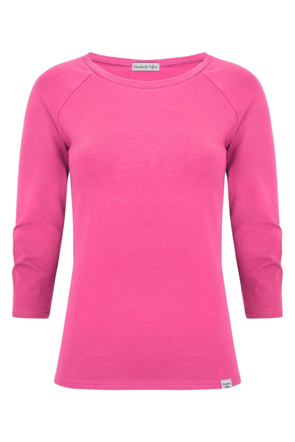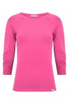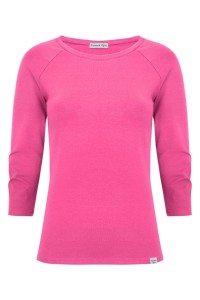 MAYA - Shocking Pink - bawełniana taliowana bluzka z okrągłym dekoltem i reglanowymi rękawami 3/4