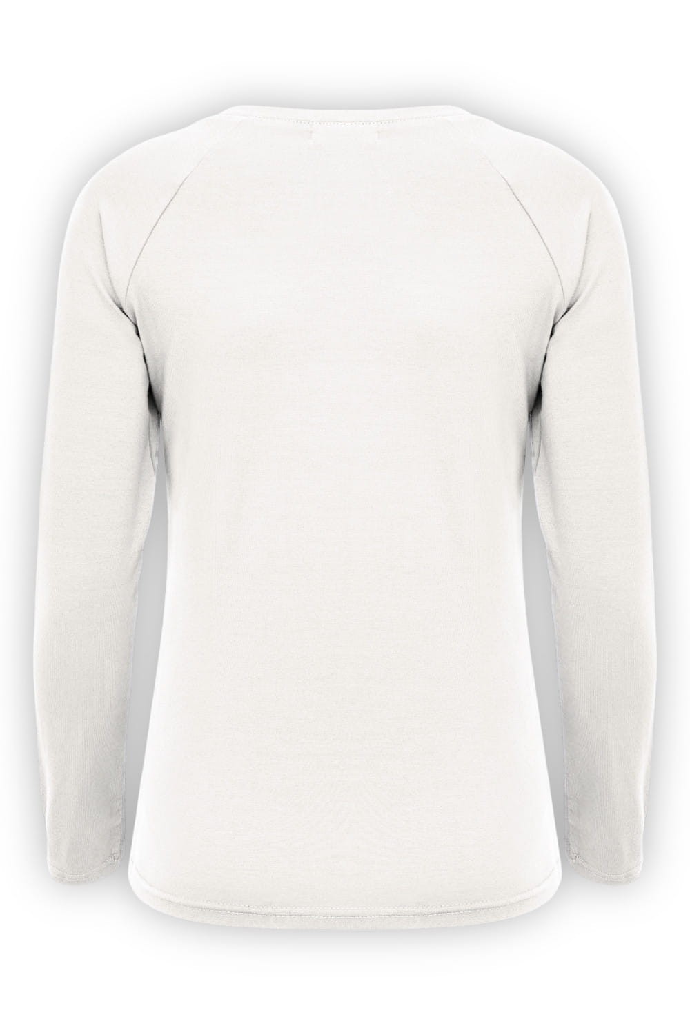 MAYA - Star White - bambusowa taliowana bluzka z okrągłym dekoltem i długimi rękawami reglanowymi