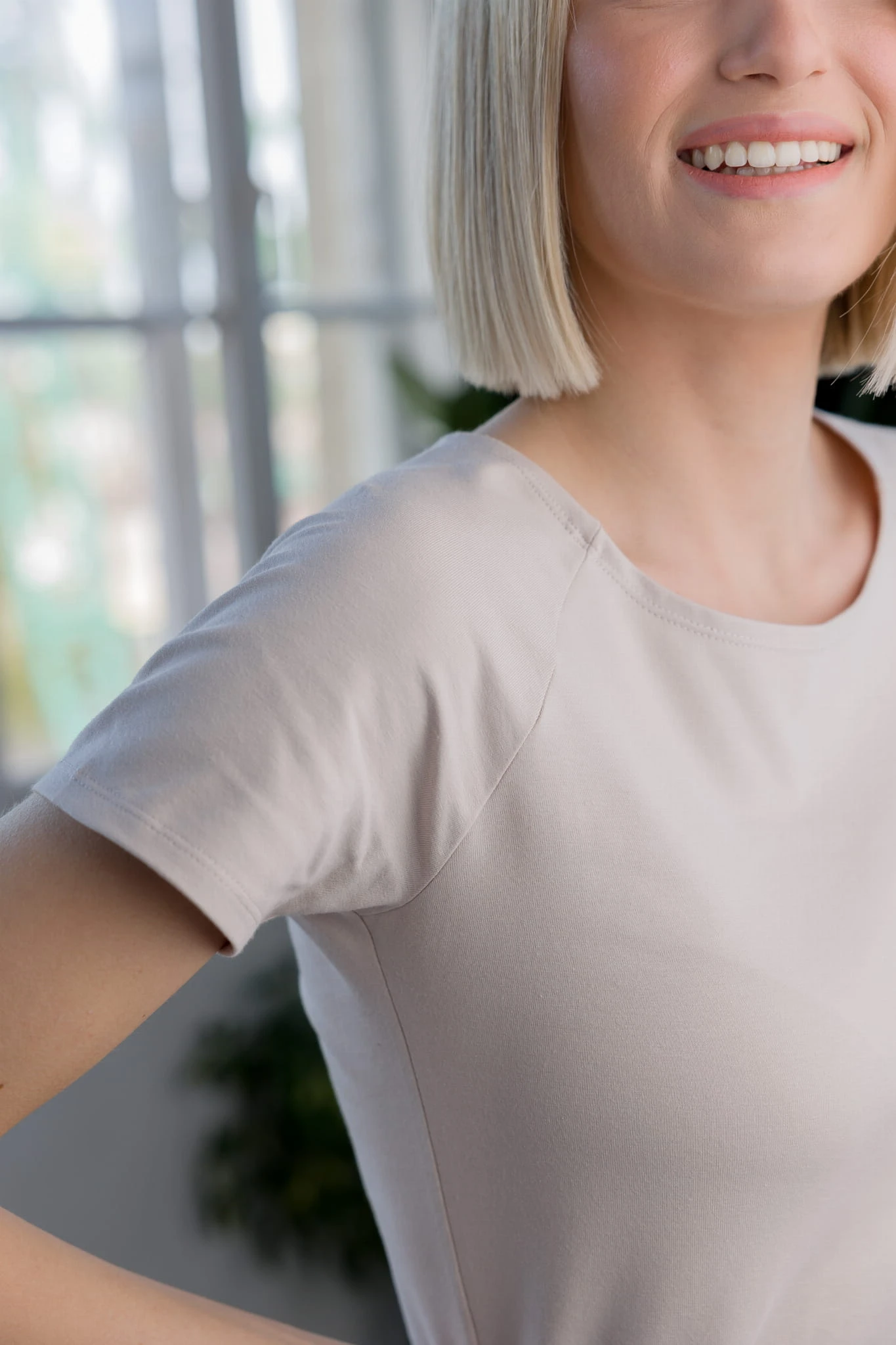 Minimalistyczna bluzka z miękkiej dzianiny bawełnianej o delikatnie taliowanym kroju i krótkich rękawach raglanowych. Model Maya doskonale sprawdzi się zarówno w codziennych stylizacjach, jak i w bardziej sportowym wydaniu, zapewniając wygodę i subtelną elegancję każdego dnia.