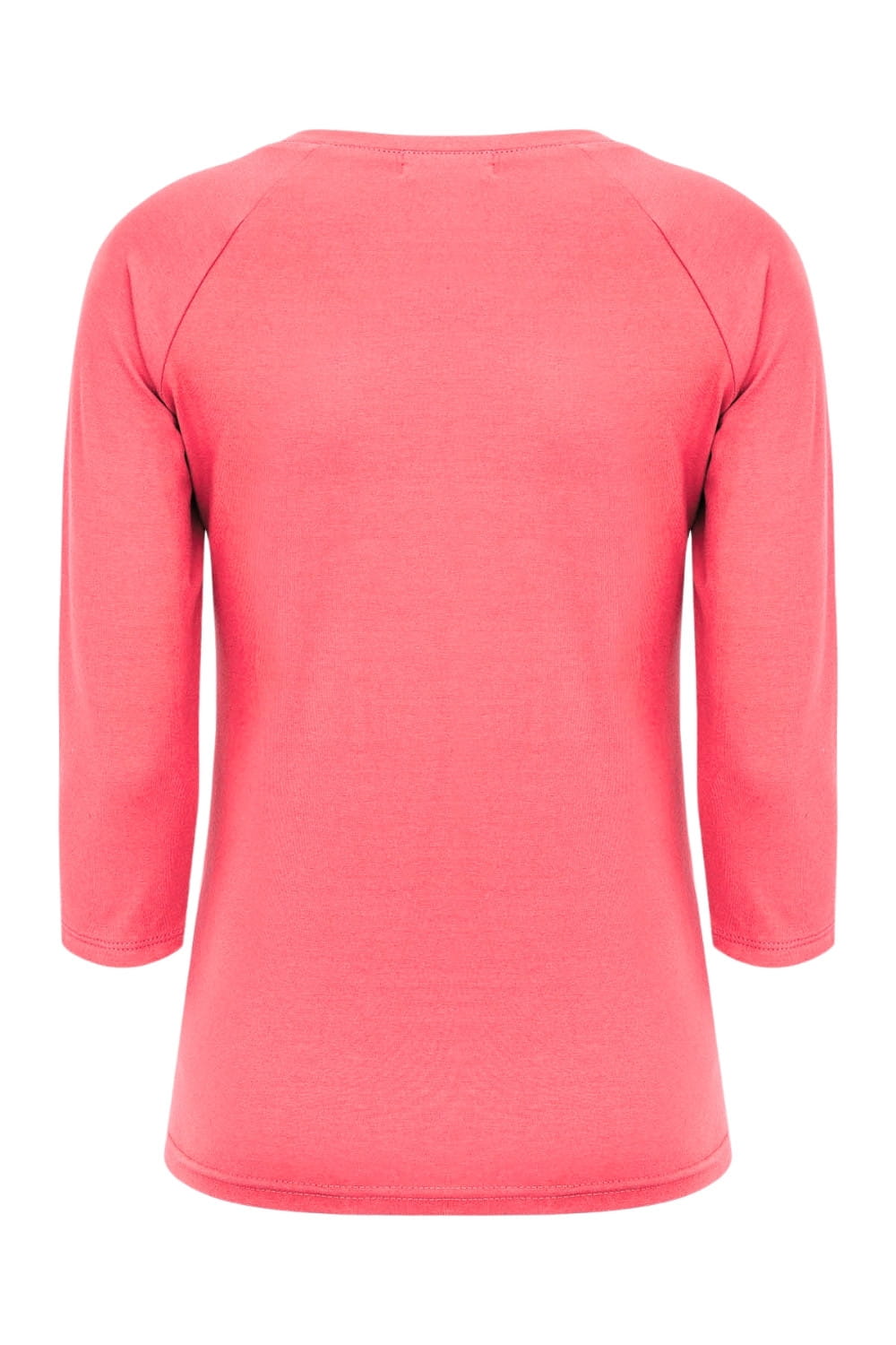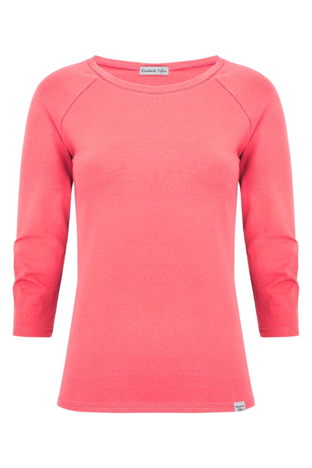 MAYA - Sunkist Coral - bawełniana taliowana bluzka z okrągłym dekoltem i reglanowymi rękawami 3/4