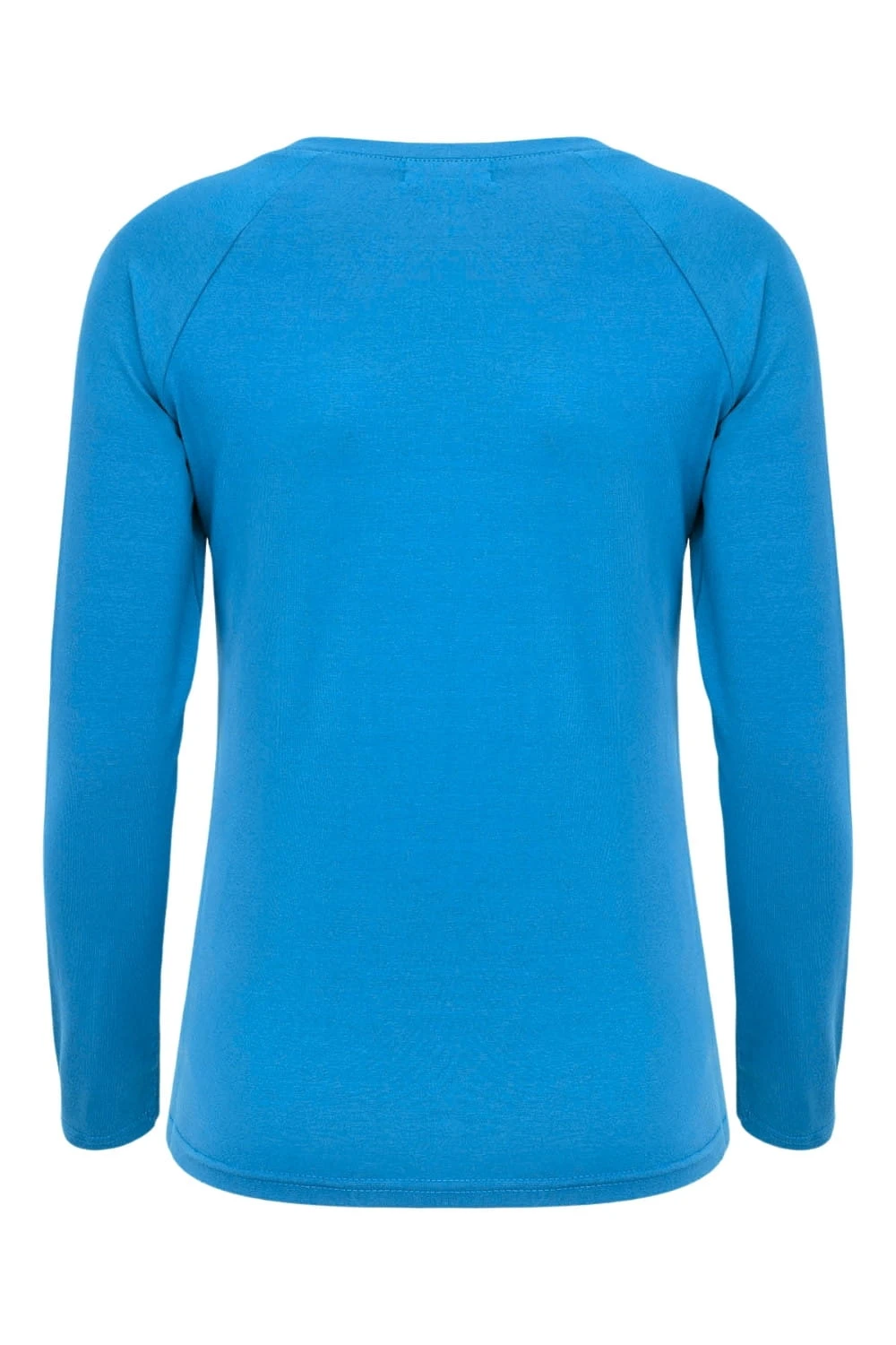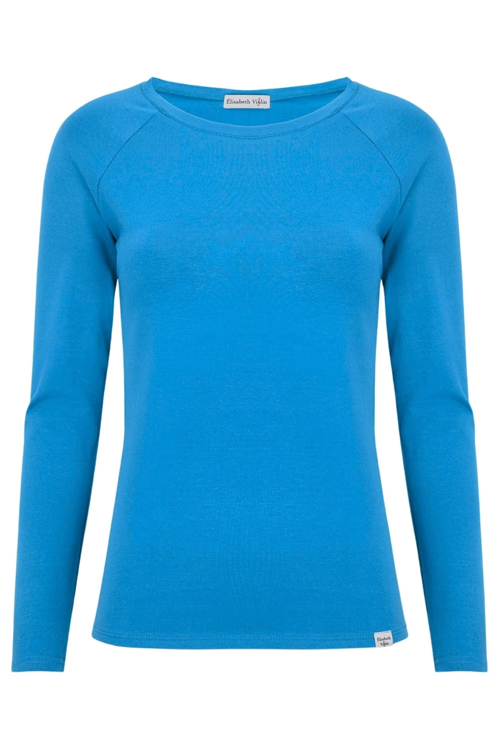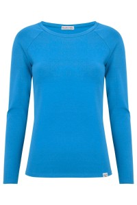 MAYA - Swedish Blue - bambusowa taliowana bluzka z okrągłym dekoltem i długimi rękawami reglanowymi