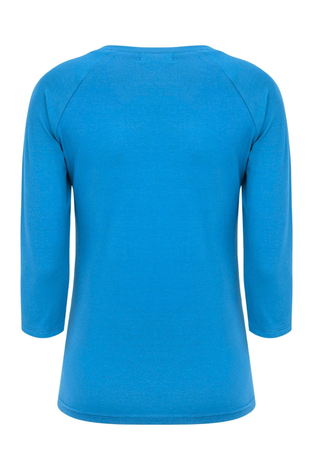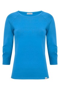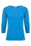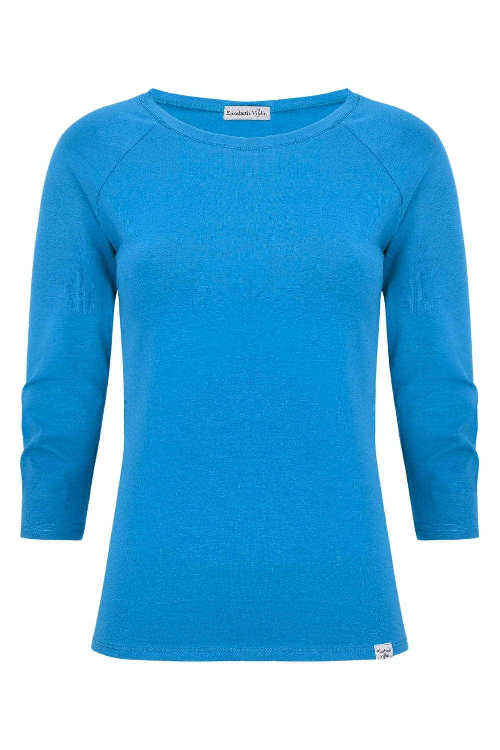 MAYA - Swedish Blue - bambusowa taliowana bluzka z okrągłym dekoltem i reglanowymi rękawami 3/4