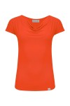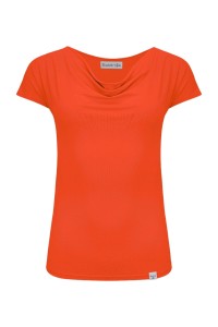MERLIA - Mandarin Red - bawełniana taliowana bluzka z dekoltem typu woda i krótkimi rękawami kimono