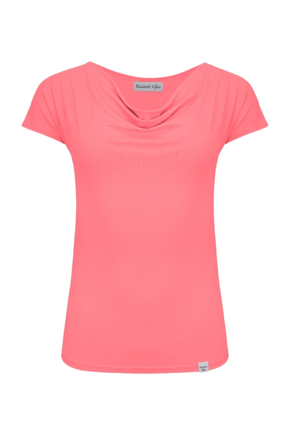MERLIA - Sunkist Coral - bawełniana taliowana bluzka z dekoltem typu woda i krótkimi rękawami kimono