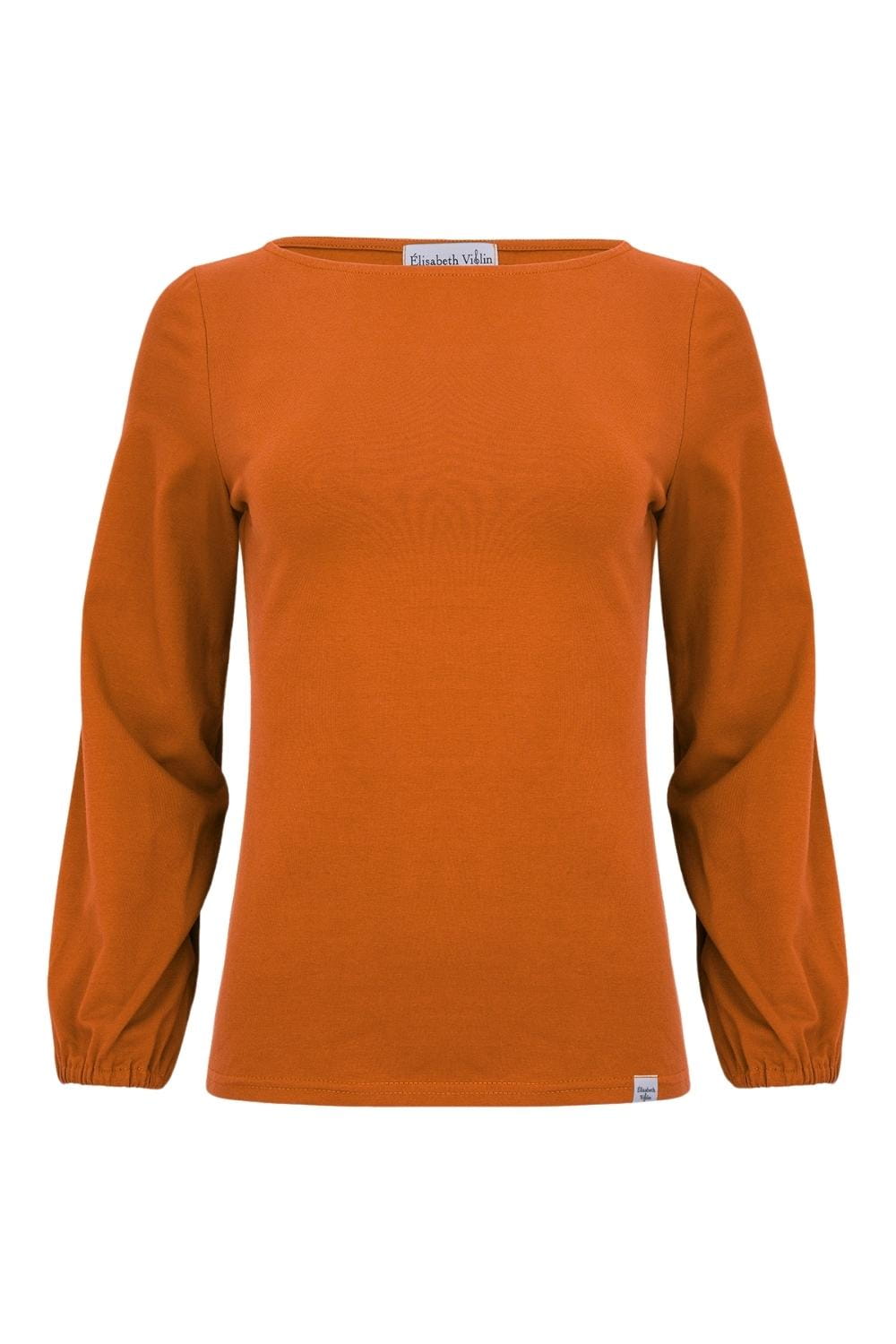 MIA – Autumn Glaze - WISKOZA – taliowana bluzka z dekoltem w łódkę i szerokimi długimi rękawami zakończonymi gumką
