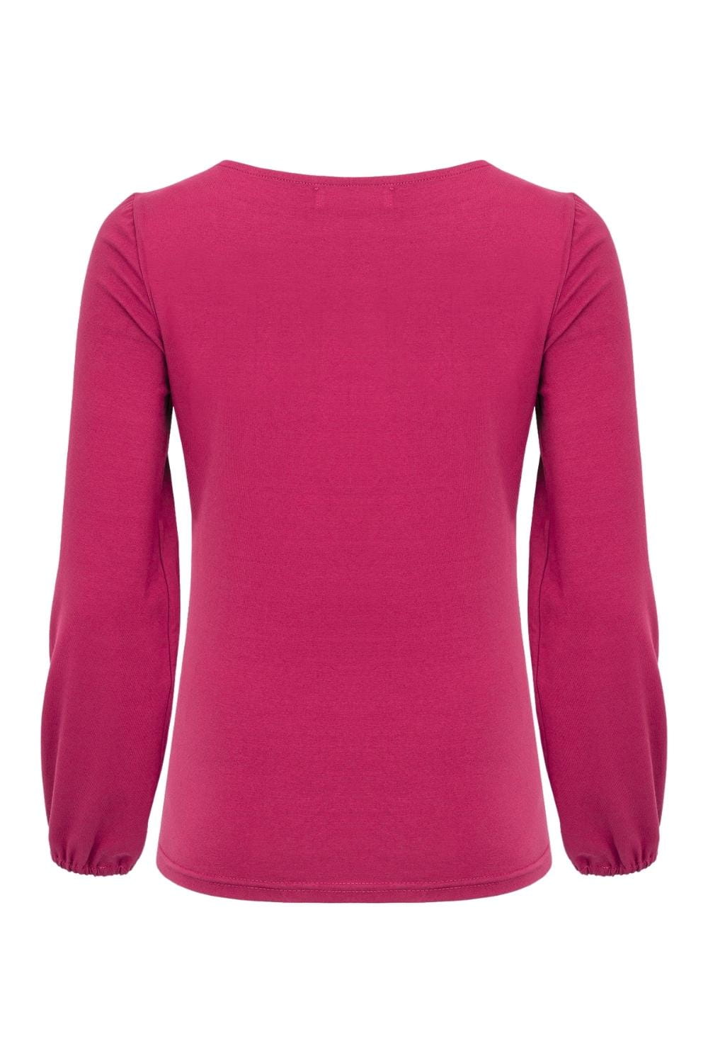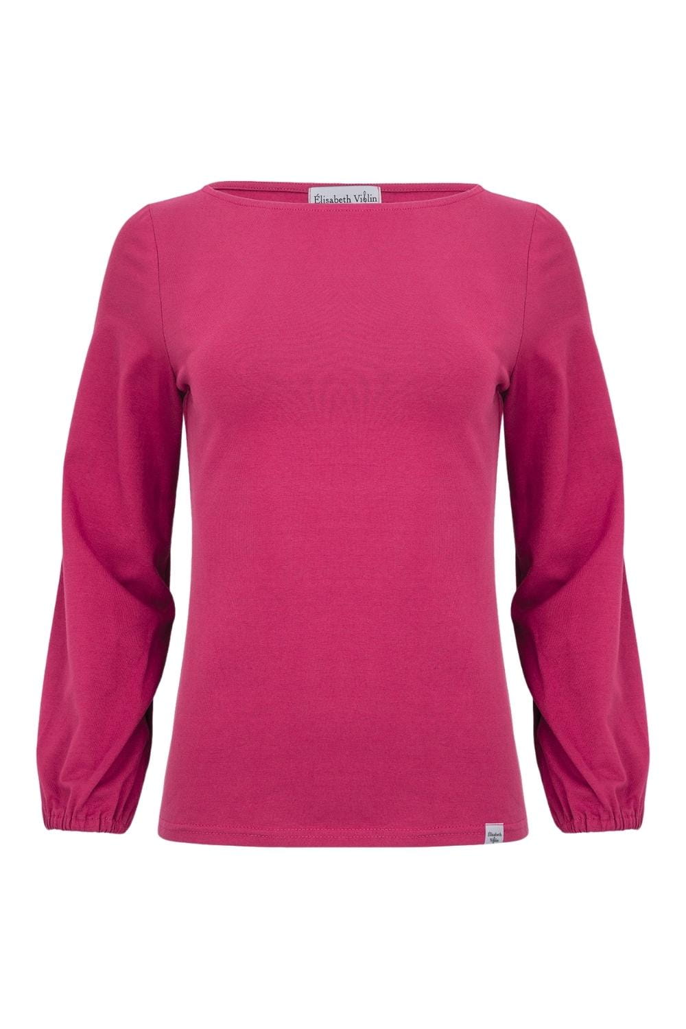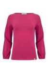 MIA – Pink Peacock - BAWEŁNA GŁADKA – taliowana bluzka z dekoltem w łódkę i szerokimi długimi rękawami zakończonymi gumką
