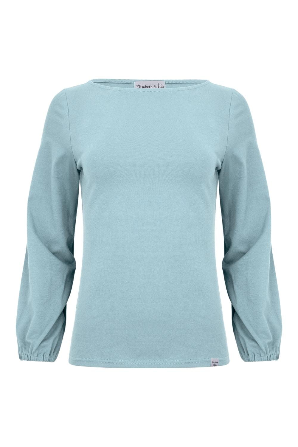 MIA – Sea Angel - BAWEŁNA GŁADKA – taliowana bluzka z dekoltem w łódkę i szerokimi długimi rękawami zakończonymi gumką