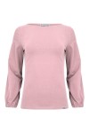 Kobieca, delikatnie taliowana bluzka z gładkiej bawełny, z dekoltem w łódkę i szerokimi długimi rękawami zakończonymi gumką, które idealnie sprawdzą się na każdą okazję.