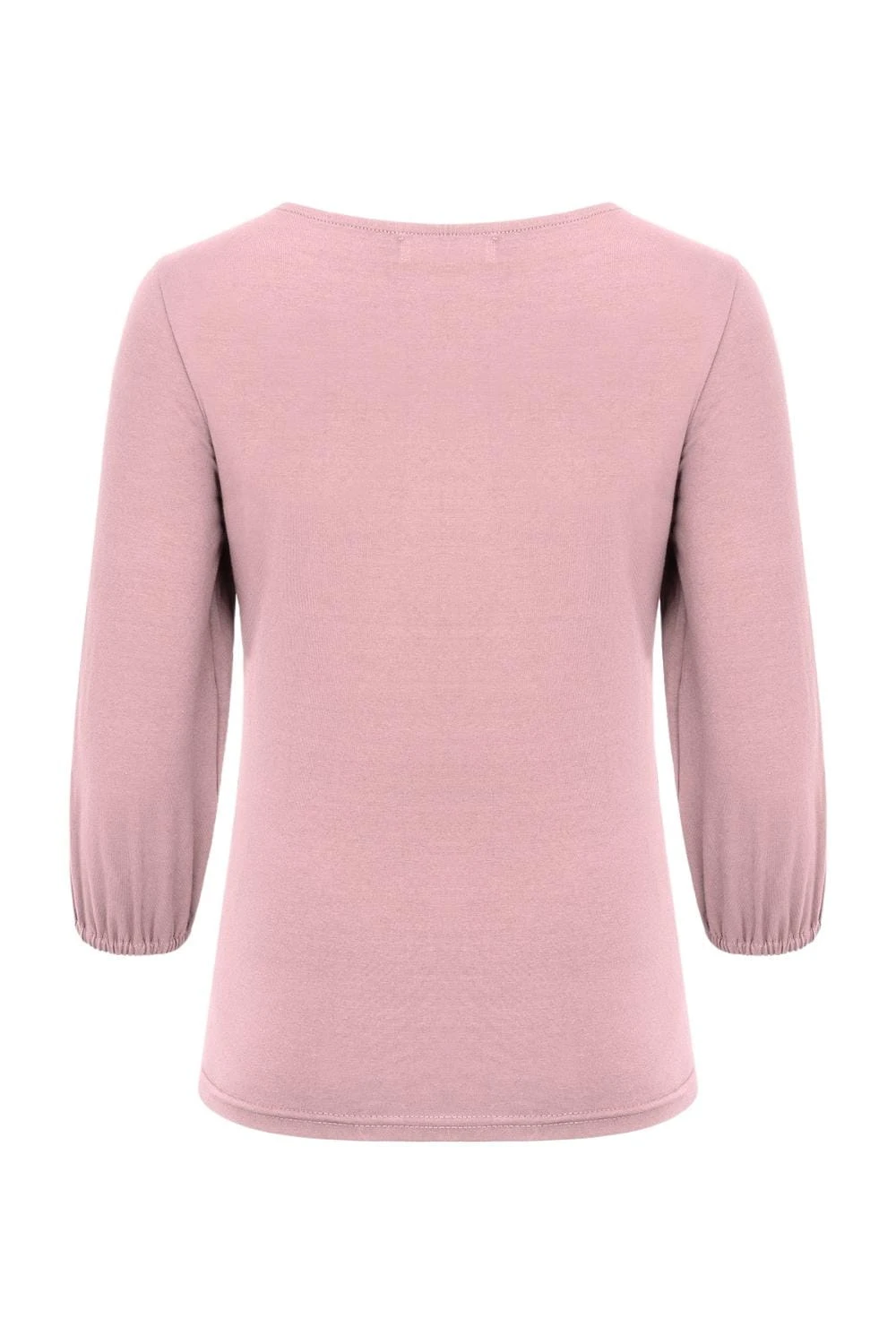 Kobieca, delikatnie taliowana bluzka z wiskozy, z dekoltem w łódkę i szerokimi rękawami 3/4 zakończonymi gumką, które idealnie sprawdzą się na co dzień.