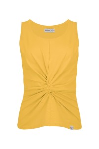 Delikatnie taliowana bluzka bez rękawów z miękkiej dzianiny, ozdobiona efektownym węzłem na wysokości talii. Kobieca, oryginalna i bardzo wygodna – świetna zarówno na co dzień, jak i na specjalne okazje. Zawsze wtedy, gdy chcesz przyciągnąć spojrzenia i zachwycić subtelną elegancją!