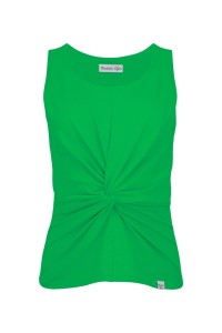 Delikatnie taliowana bluzka bez rękawów z miękkiej dzianiny, ozdobiona efektownym węzłem na wysokości talii. Kobieca, oryginalna i bardzo wygodna – świetna zarówno na co dzień, jak i na specjalne okazje. Zawsze wtedy, gdy chcesz przyciągnąć spojrzenia i zachwycić subtelną elegancją!