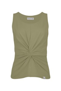 Delikatnie taliowana bluzka bez rękawów z miękkiej dzianiny, ozdobiona efektownym węzłem na wysokości talii. Kobieca, oryginalna i bardzo wygodna – świetna zarówno na co dzień, jak i na specjalne okazje. Zawsze wtedy, gdy chcesz przyciągnąć spojrzenia i zachwycić subtelną elegancją!