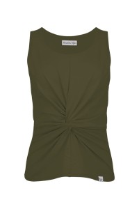 MIXY - Olive Night - wiskozowa taliowana bluzka z ozdobnym węzłem w talii, okrągłym dekoltem i bez rękawków