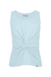 MIXY - Sterling Blue - wiskozowa taliowana bluzka z ozdobnym węzłem w talii, okrągłym dekoltem i bez rękawków