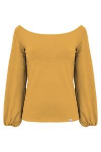 MORELLA - Bright Gold - bambusowa taliowana bluzka z długimi szerokimi reglanowymi rękawkami zakończonymi gumką z szerokim dekoltem w łódkę