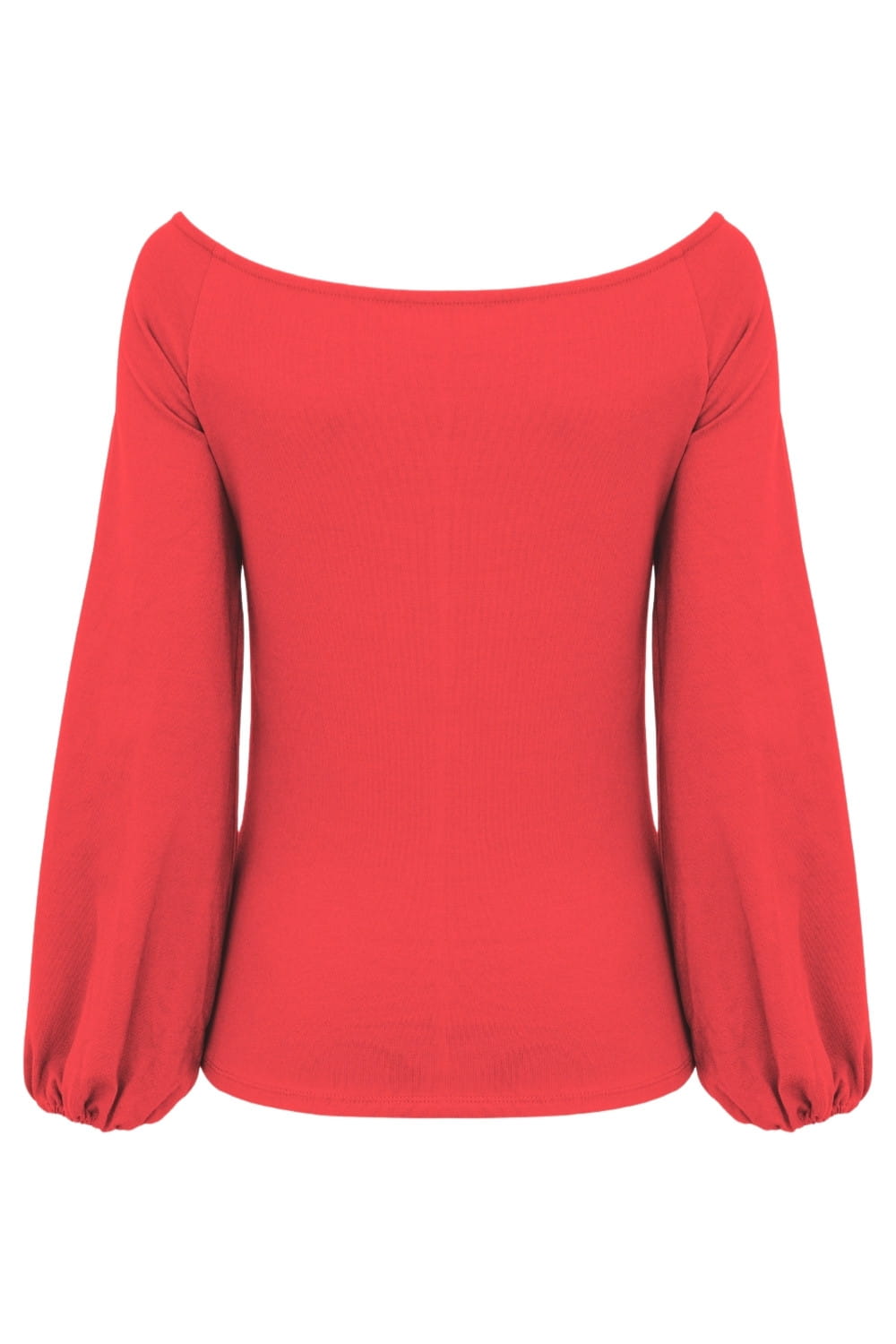 MORELLA - Cayenne - wiskozowa taliowana bluzka z długimi szerokimi reglanowymi rękawkami zakończonymi gumką z szerokim dekoltem w łódkę