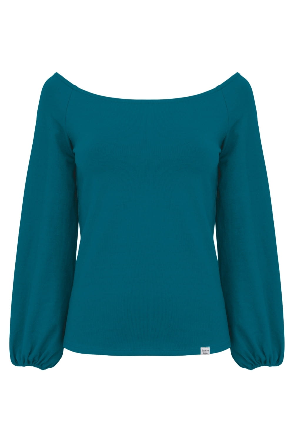 MORELLA - Celestial - wiskozowa taliowana bluzka z długimi szerokimi reglanowymi rękawkami zakończonymi gumką z szerokim dekoltem w łódkę