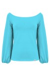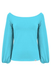 MORELLA - Cyan Blue - wiskozowa taliowana bluzka z długimi szerokimi reglanowymi rękawkami zakończonymi gumką z szerokim dekoltem w łódkę