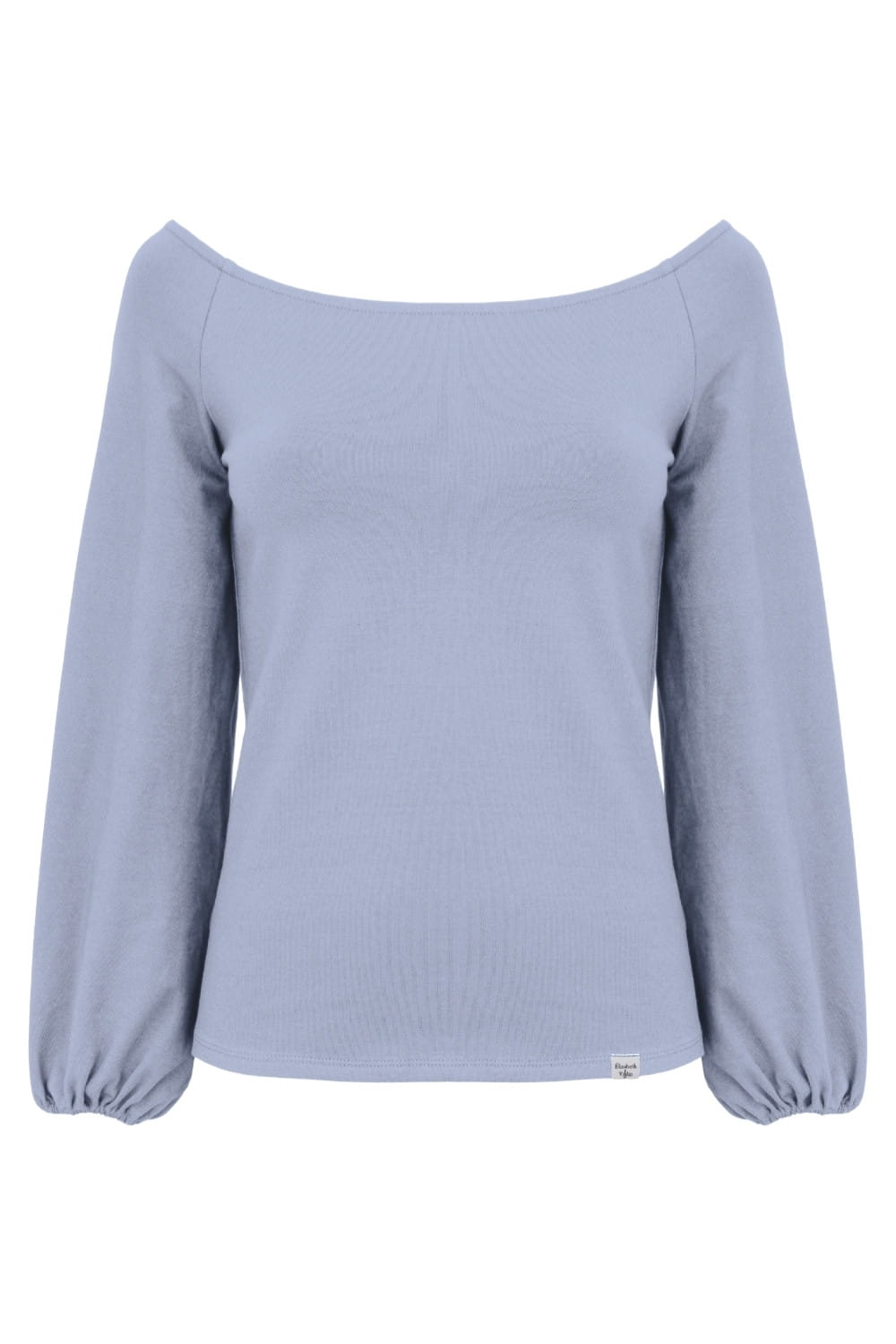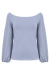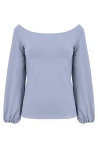 MORELLA - Faded Denim - wiskozowa taliowana bluzka z długimi szerokimi reglanowymi rękawkami zakończonymi gumką z szerokim dekoltem w łódkę