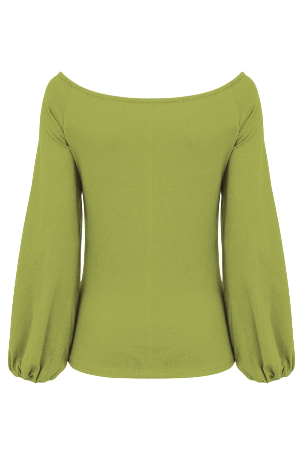 MORELLA - Herbal Garden - bambusowa taliowana bluzka z długimi szerokimi reglanowymi rękawkami zakończonymi gumką z szerokim dekoltem w łódkę