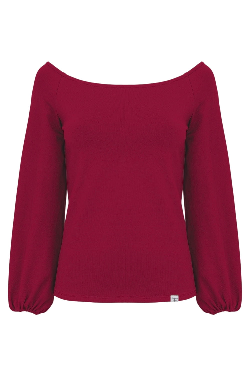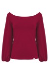 MORELLA - Jalapeño Red - wiskozowa taliowana bluzka z długimi szerokimi reglanowymi rękawkami zakończonymi gumką z szerokim dekoltem w łódkę