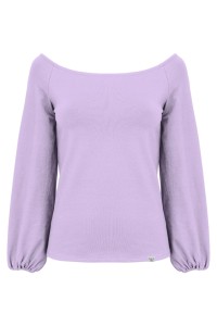 MORELLA - Lavender - bambusowa taliowana bluzka z długimi szerokimi reglanowymi rękawkami zakończonymi gumką z szerokim dekoltem w łódkę
