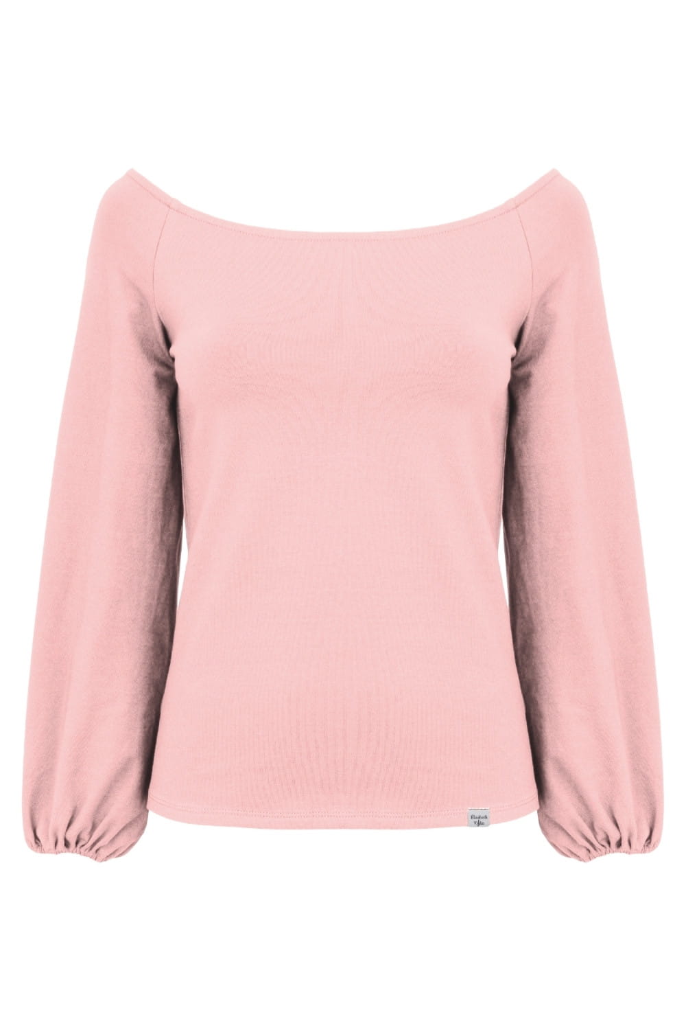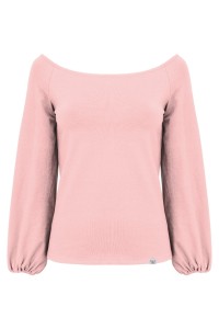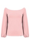MORELLA - Misty Rose - wiskozowa taliowana bluzka z długimi szerokimi reglanowymi rękawkami zakończonymi gumką z szerokim dekoltem w łódkę