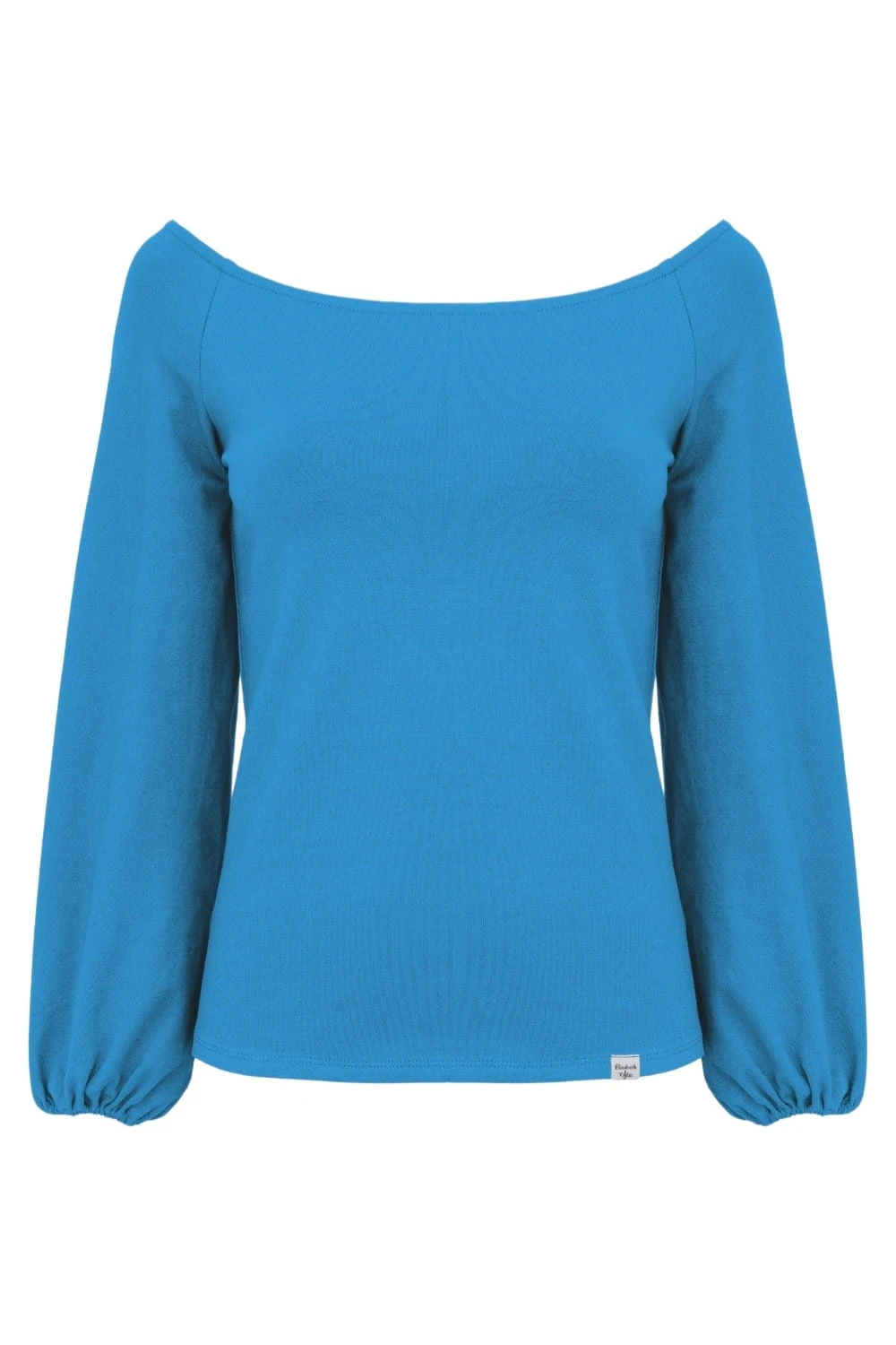 MORELLA - Swedish Blue - bambusowa taliowana bluzka z długimi szerokimi reglanowymi rękawkami zakończonymi gumką z szerokim dekoltem w łódkę