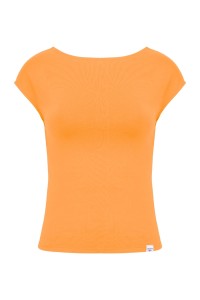 RHÉA - Blazing Orange - bambusowa taliowana bluzka z wycięciem na plecach i krótkimi rękawami