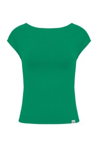 RHÉA - Deep Green - bawełniana taliowana bluzka z wycięciem na plecach i krótkimi rękawami