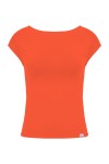RHÉA - Flame Scarlet - wiskozowa taliowana bluzka z wycięciem na plecach i krótkimi rękawami