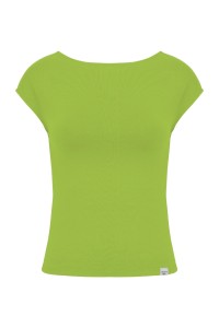 RHÉA - Greenery - bawełniana taliowana bluzka z wycięciem na plecach i krótkimi rękawami