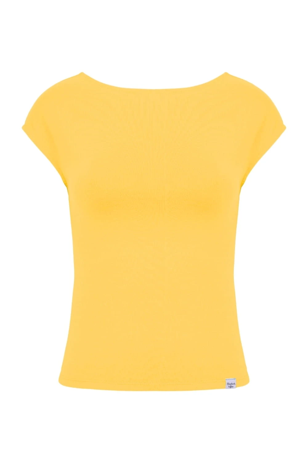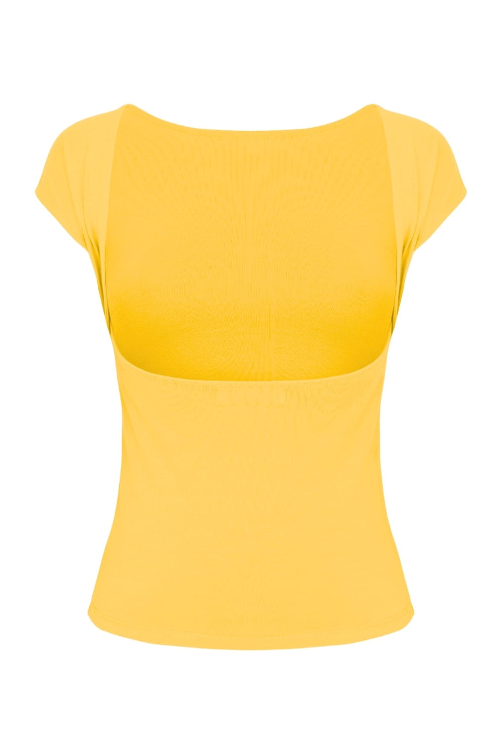 RHÉA - Habañero Gold - bawełniana taliowana bluzka z wycięciem na plecach i krótkimi rękawami
