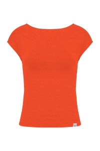 RHÉA - Mandarin Red - bawełniana taliowana bluzka z wycięciem na plecach i krótkimi rękawami