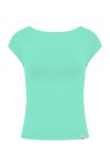 RHÉA - Pool Blue - bawełniana taliowana bluzka z wycięciem na plecach i krótkimi rękawami