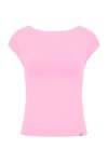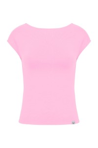RHÉA - Sea Pink - wiskozowa taliowana bluzka z wycięciem na plecach i krótkimi rękawami