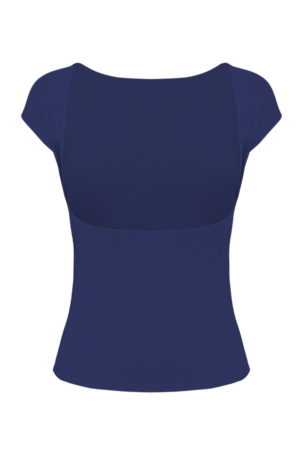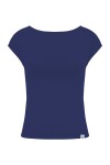 RHÉA - Sodalite Blue - bawełniana taliowana bluzka z wycięciem na plecach i krótkimi rękawami