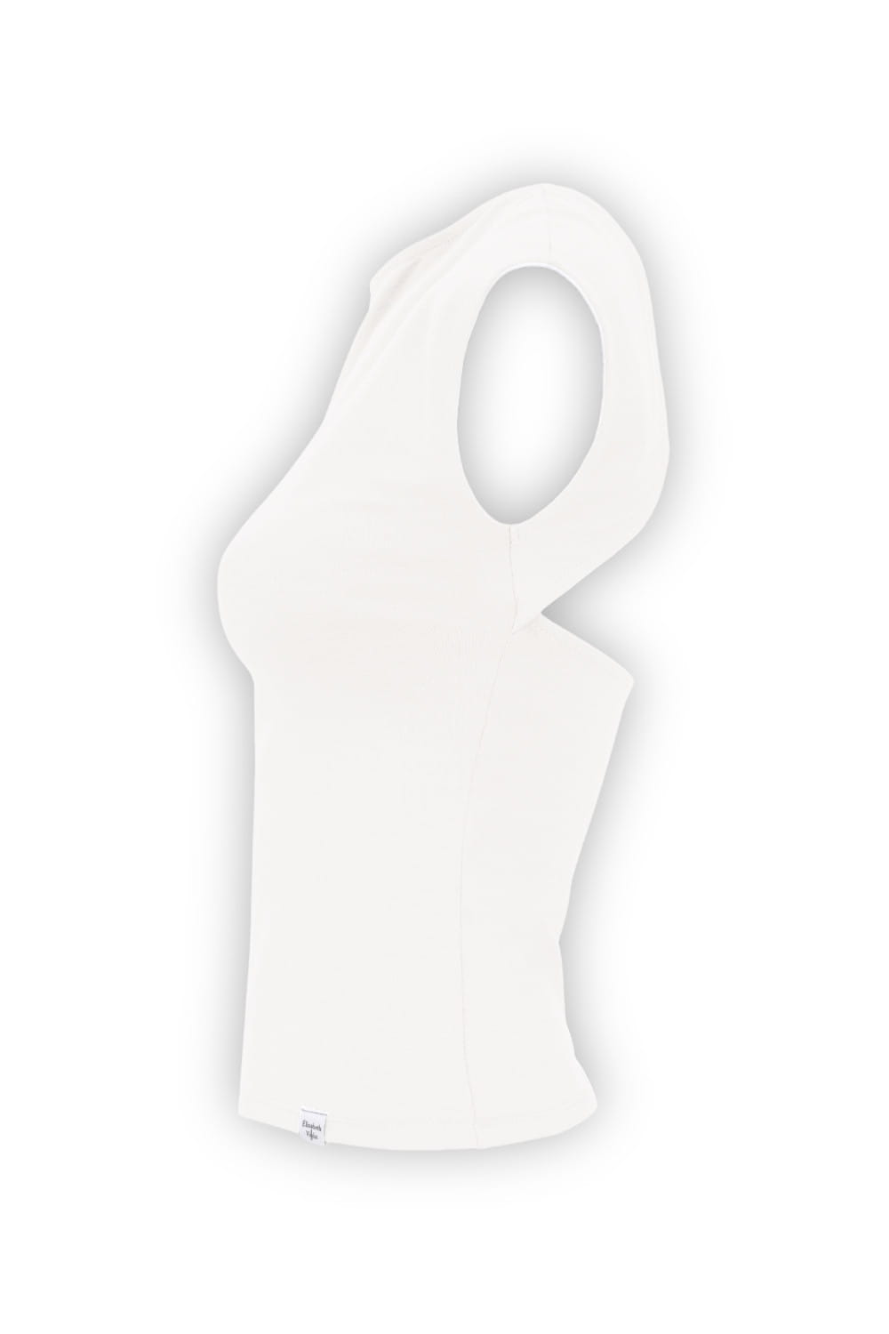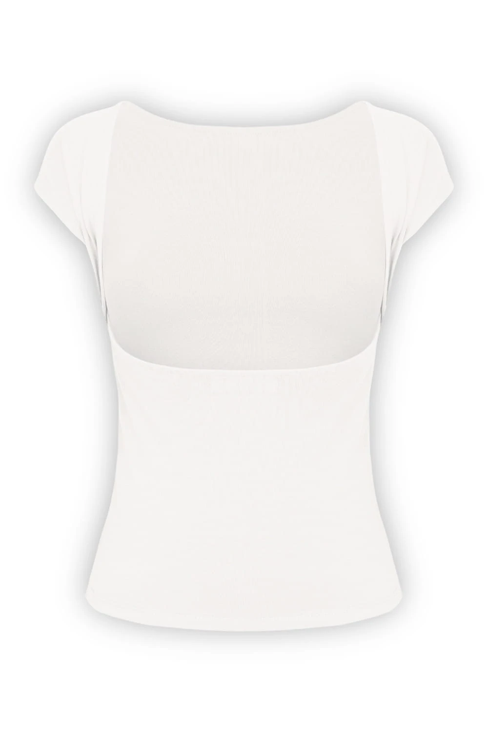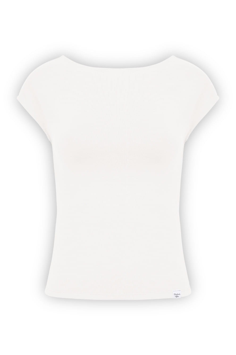 RHÉA - Star White - bawełniana taliowana bluzka z wycięciem na plecach i krótkimi rękawami