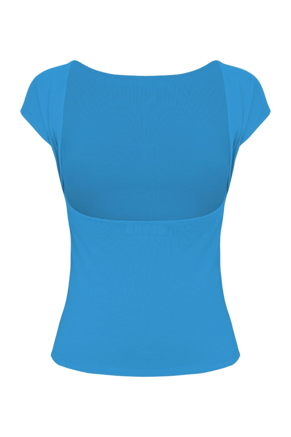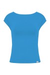 RHÉA - Swedish Blue - bambusowa taliowana bluzka z wycięciem na plecach i krótkimi rękawami