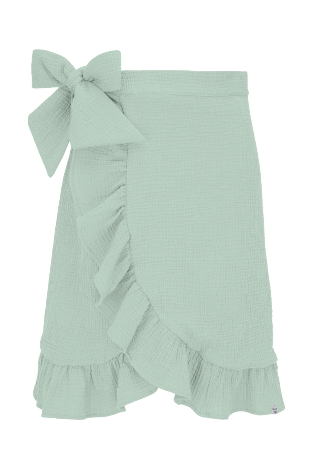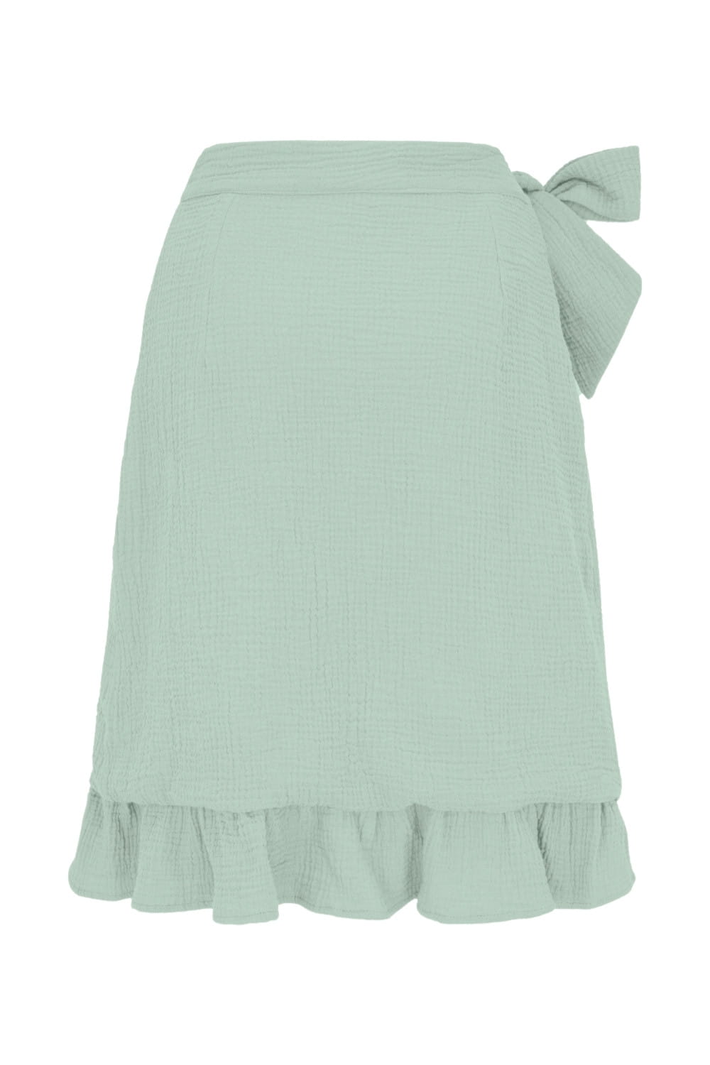 ROSALIA - Frosty Green - kopertowa spódnica do kolan z falbaną i wiązaniem w talii