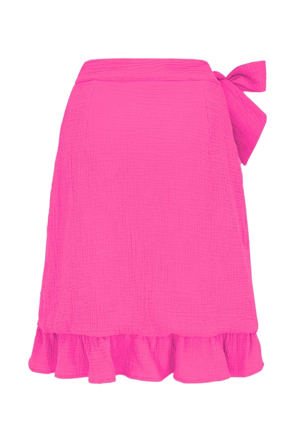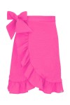 ROSALIA - Fuchsia Purple - kopertowa spódnica do kolan z falbaną i wiązaniem w talii
