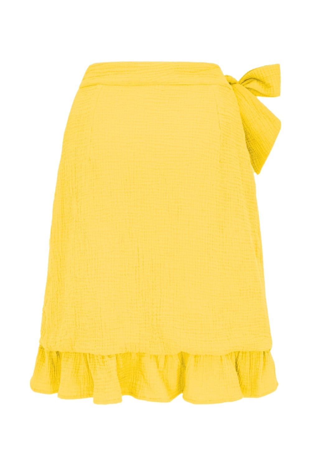 Romantyczna kopertowa spódnica z falbaną o długości do kolan - 60 cm. Ma bawełnianą podszewkę o wykończeniu soft touch, wszytą tak, by się nie podwijała. W pasie ma ozdobne wiązanie oraz ukryte wewnątrz praktyczne zapięcie. To spódnica idealna na każdą okazję, na której chcesz zrobić efekt WOW!