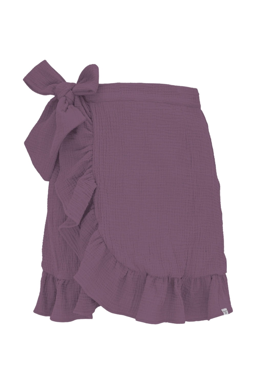 ROSALIA - Grape Nectar - kopertowa spódnica przed kolano z falbaną i wiązaniem w talii