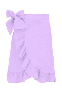 ROSALIA - Lavender - kopertowa spódnica do kolan z falbaną i wiązaniem w talii