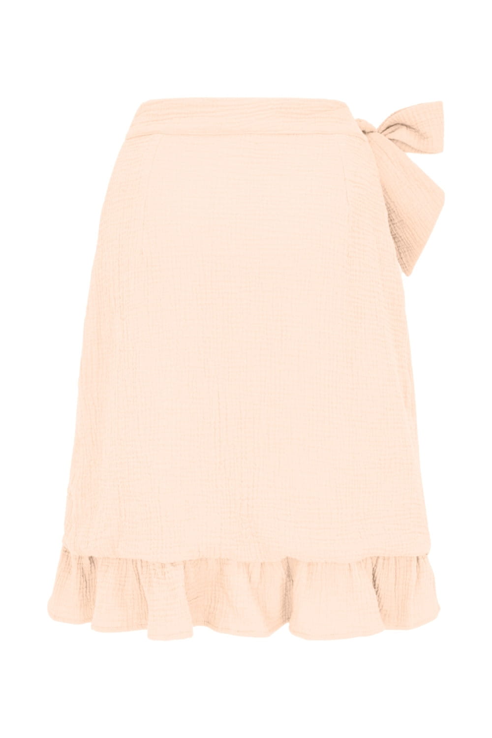 ROSALIA - Novelle Peach - kopertowa spódnica do kolan z falbaną i wiązaniem w talii