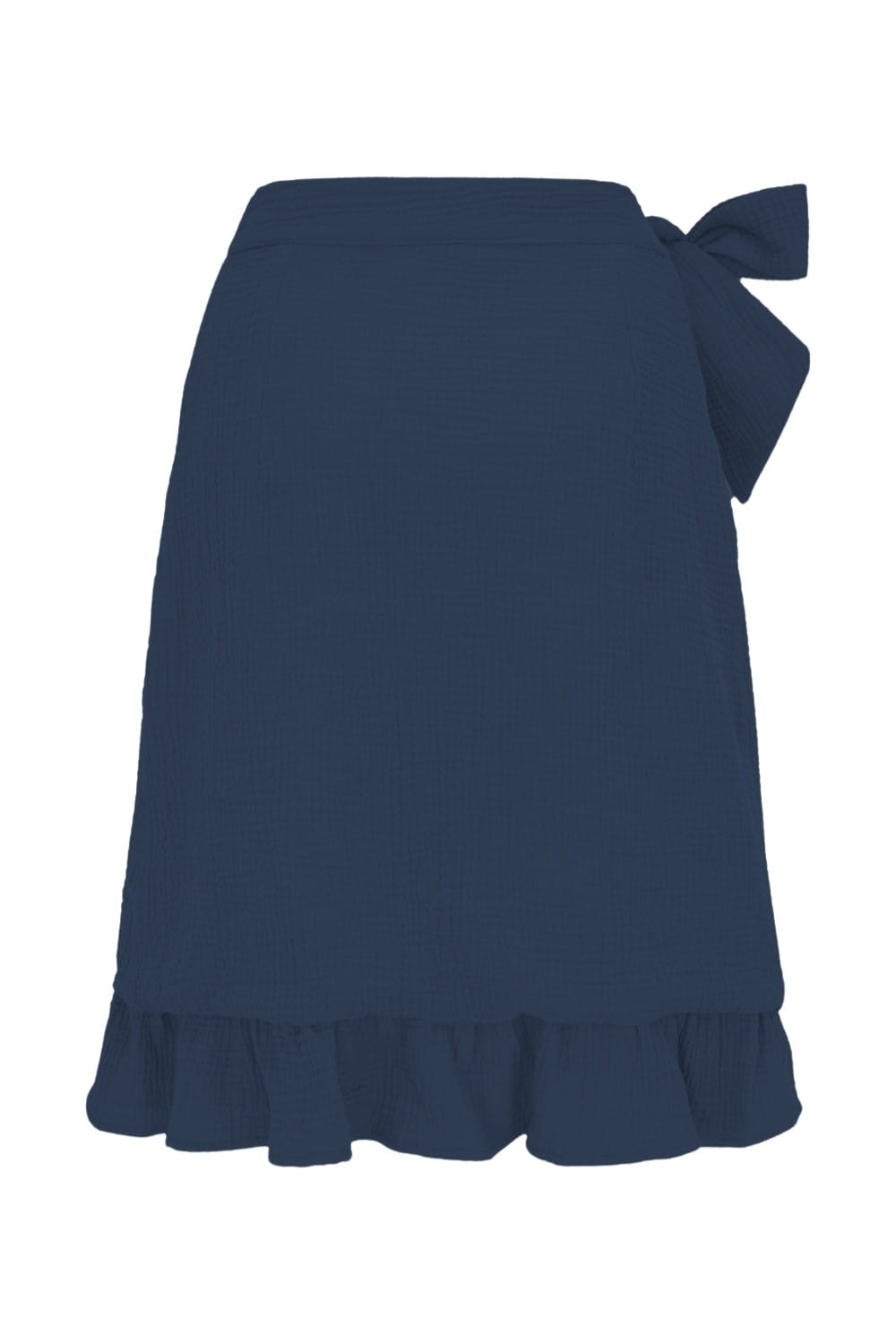 ROSALIA - Orion Blue - kopertowa spódnica do kolan z falbaną i wiązaniem w talii