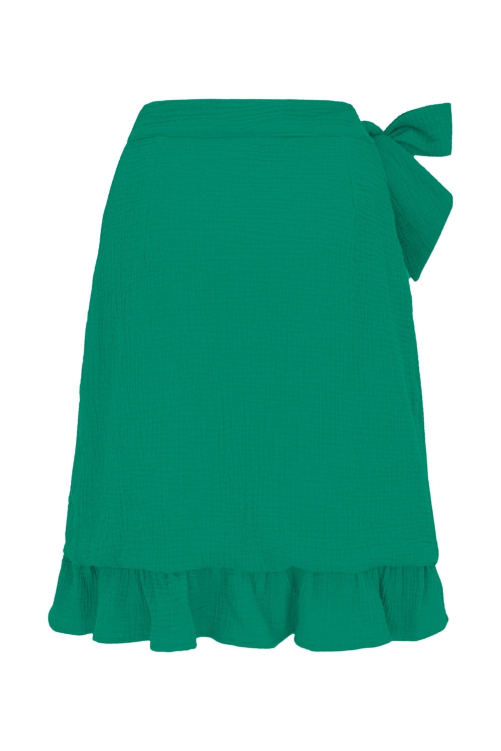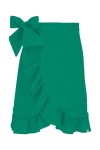 ROSALIA - Pepper Green - kopertowa spódnica do kolan z falbaną i wiązaniem w talii