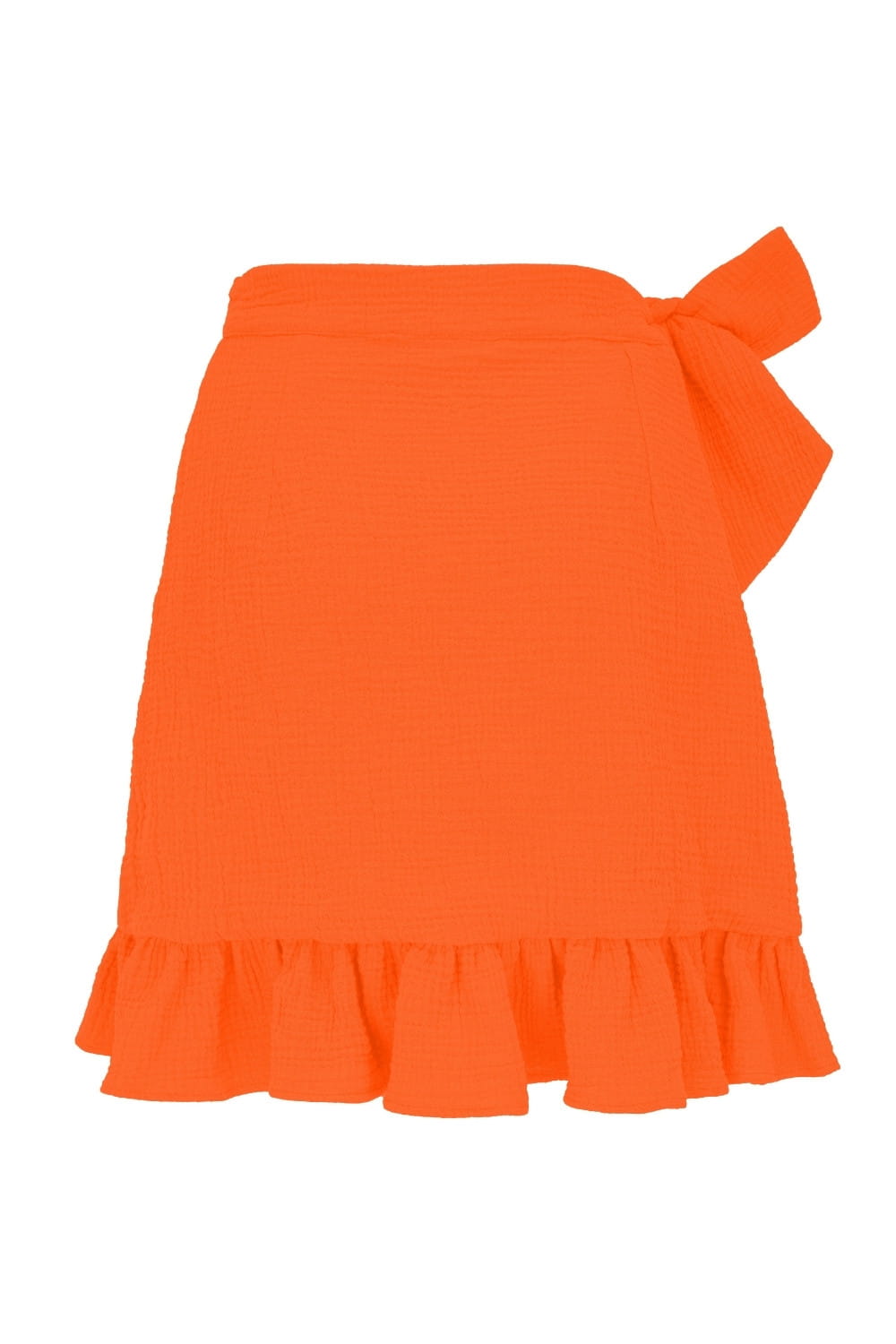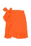 ROSALIA - Persimmon Orange - kopertowa spódnica przed kolano z falbaną i wiązaniem w talii