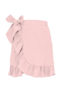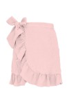 ROSALIA - Pink Salt - kopertowa spódnica przed kolano z falbaną i wiązaniem w talii